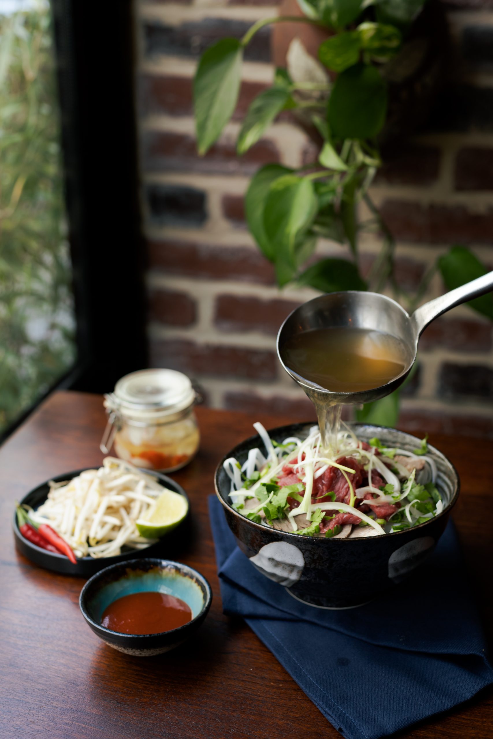 Des figurines vietnamiennes et des tambours de bronze pour décor, Dieu Linh et Vinh Hoang ont repris cette enseigne familiale près des catacombes de la place Denfert-Rochereau en 2018. Né à Hanoï, le couple présente des recettes authentiques et fabriquées maison telles qu’on les réalise au nord du Vietnam.