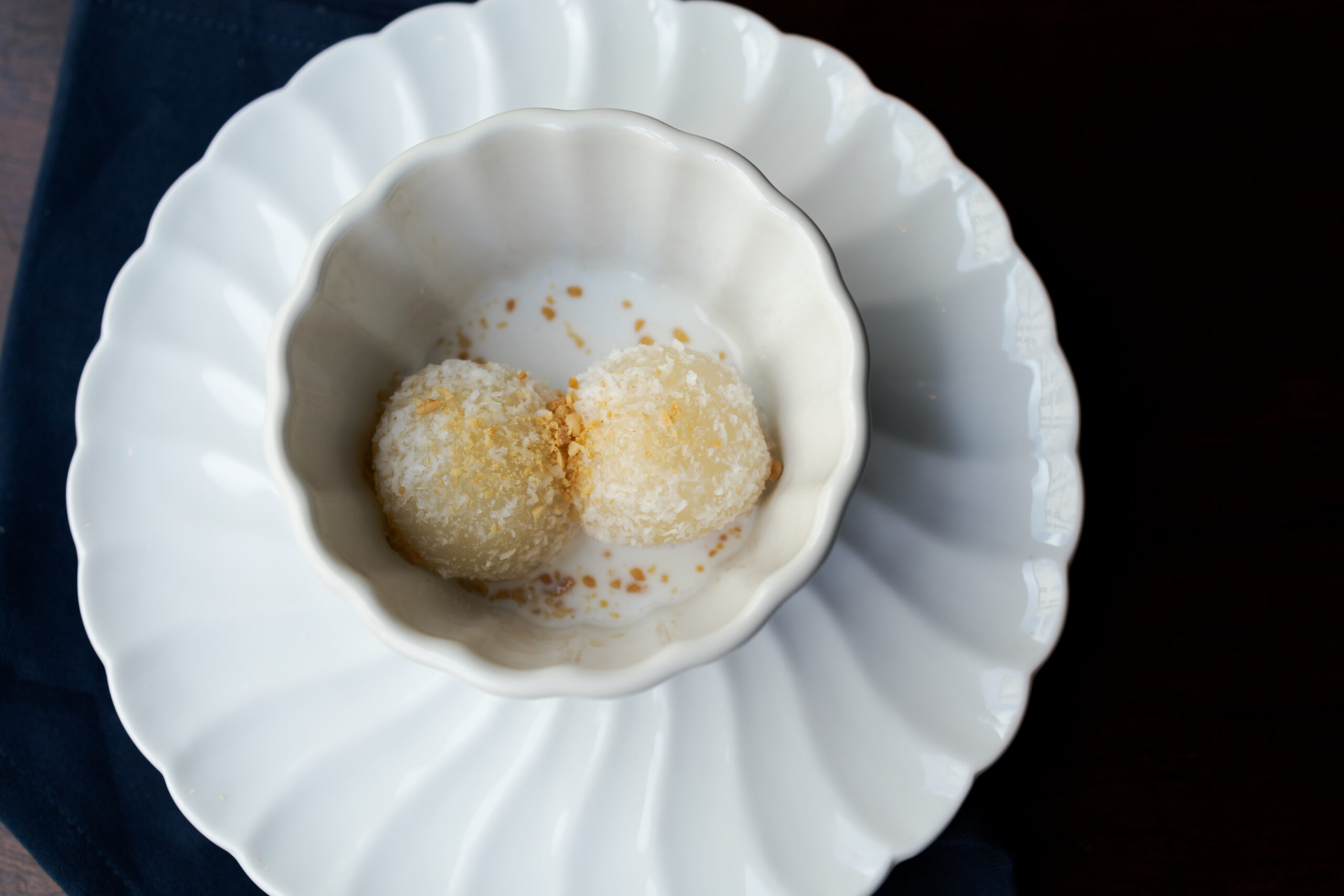 Dessert à base de farine de riz gluant, fourré à la crème de haricot, mungo